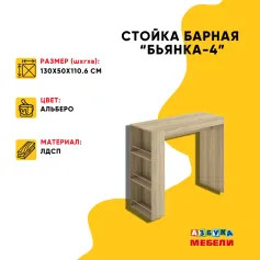 Стойка барная Бьянка-4 представляет собой стильное и практичное решение для обустройства барной зоны или кухни. Ее современный дизайн и функциональность делают ее идеальным выбором для организации пространства для приема гостей и хранения барных аксессуаров. С тремя полками, предусмотренными в стойке, вы сможете организовать удобное хранение бокалов, бутылок, коктейльных ингредиентов и других необходимых предметов. Высокие размеры стойки (110.6 см) позволяют использовать ее как функциональный элемент интерьера, а также создать удобное рабочее пространство для приготовления напитков. Изготовленная из ЛДСП, стойка обладает прочной и надежной конструкцией, обеспечивающей долгий срок службы изделия. Ее размеры составляют 50 см в ширину, 130 см в длину, что делает ее компактной и удобной для размещения в различных помещениях.