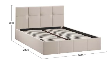 кровать с мягкой обивкой 1400 мм, с решеткой, с подъемным механизмом без матраса, дно в комплекте