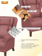 Красивое и удобное Недостатки: Большое Комментарии: Хорошее кресло, думала оно поменьше, оказалось большое. Обито красивой велюровой тканью |