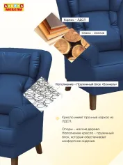Красивое и удобное Недостатки: Большое Комментарии: Хорошее кресло, думала оно поменьше, оказалось большое. Обито красивой велюровой тканью |