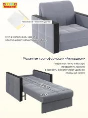 Кресло-кровать ЛИОН – это современное и удобное решение для вашего пространства. С механизмом трансформации Аккордеон кресло легко превращается в уютное спальное место.