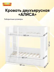 Кровать АЛИСА - это стильное и функциональное решение для вашего интерьера. Кровать АЛИСА имеет современный стиль и оснащена ортопедической решеткой, что обеспечивает комфортное спальное место. Она также имеет лестницу, расположенную слева, для удобного доступа к верхнему ярусу. Особенностью этой кровати является ее элегантный цвет, который добавляет изысканности и уюта в помещение. Кроме того, ее размеры позволяют разместить ее даже в небольшой комнате. С весом 109 кг и размерами 187x80.4x167 см, кровать обладает устойчивостью и прочностью. Материал каркаса - ЛДСП. Современный стиль и удобство использования делают кровать АЛИСА идеальным выбором для тех, кто ценит комфорт, стиль и функциональность. Она обеспечит вам уютное место для отдыха и хранения вещей, а также поможет организовать пространство в вашей гостиной или спальне.