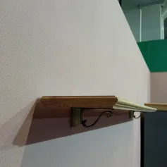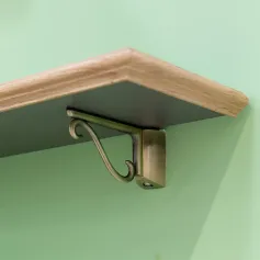 Эта полка - прекрасное решение для организации пространства в гостиной. Она крепится к стене с использованием декоративных полкодержателей, что придает ей легкий и элегантный вид.