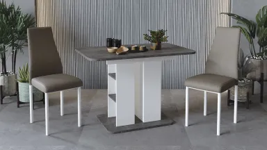Каркас и столешница выполнены из ЛДСП, что гарантирует долговечность и устойчивость к внешним воздействиям. Стол идеально подходит для современных интерьеров и станет стильным дополнением вашей обеденной зоны.