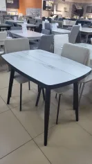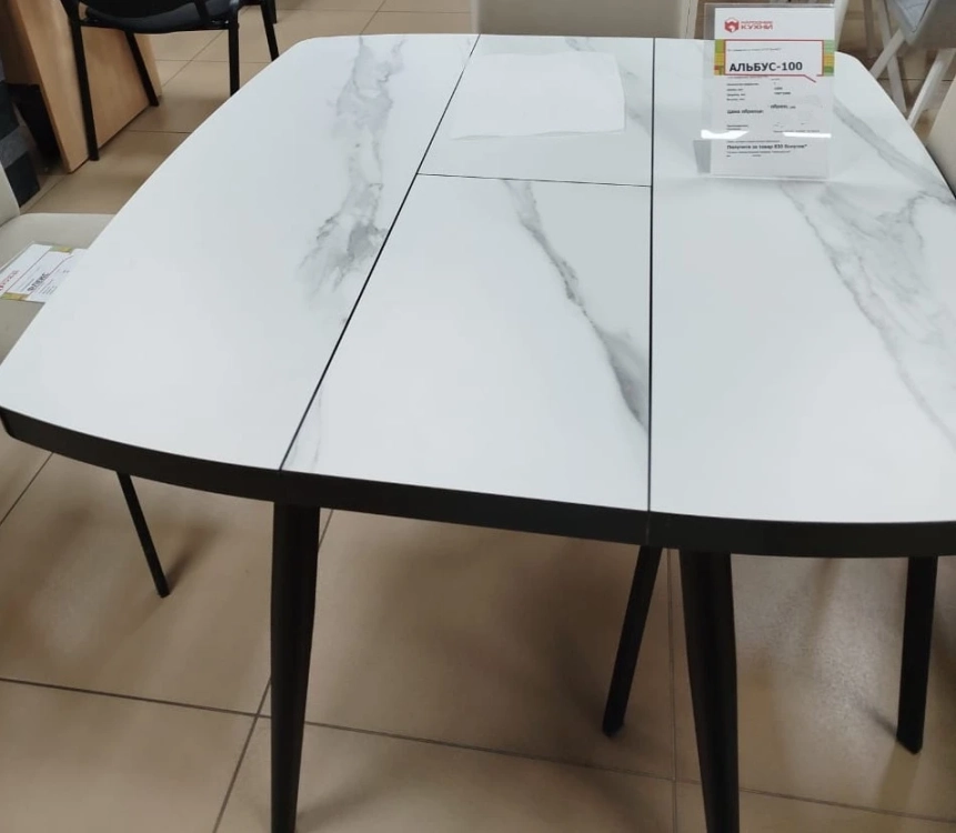 АЛЬБУС/TINTO-100 СТОЛ РАЗДВИЖНОЙ 1000(1000)*700 Мрамор светлый - compakt cer/черный