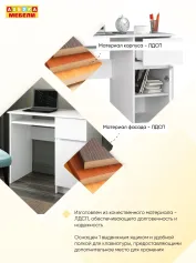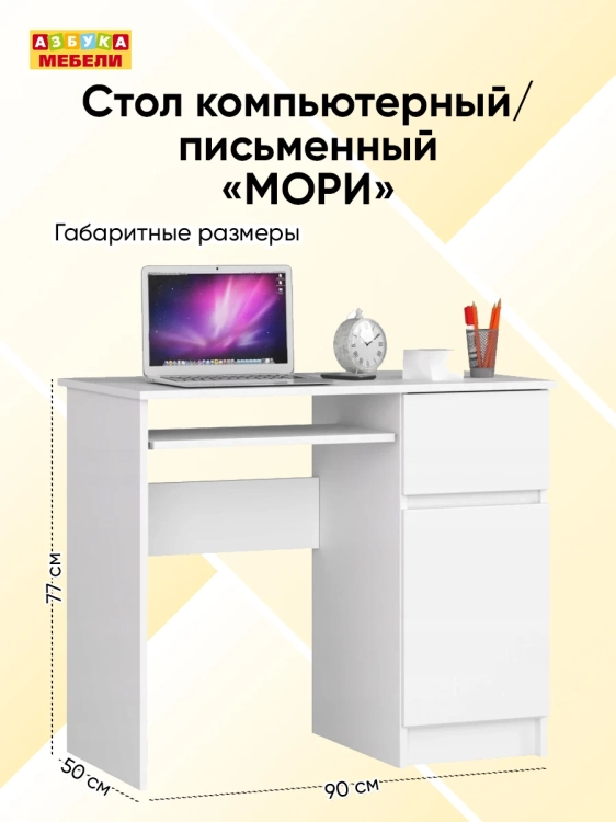 Компьютерный стол МОРИ (арт. 216458) - идеальный выбор для создания функционального и стильного рабочего пространства. В современном стиле и белом цвете, он привносит свежесть и элегантность в любой интерьер. Габариты стола составляют 50 см глубина, 76.6 см высота и 90 см длина, что делает его компактным и удобным для различных помещений. Стол МОРИ изготовлен из высококачественного материала - ЛДСП, обеспечивающего прочность и долговечность. Прямая конструкция стола создает минималистичный и современный вид. Ориентация стола - правая, что позволяет адаптировать его под ваши предпочтения и потребности. Он оснащен 1 ящиком и удобной полкой для клавиатуры, предоставляя достаточно места для хранения и организации рабочего пространства. Стол МОРИ имеет роликовые направляющие, которые обеспечивают плавное и легкое открытие ящика. Этот стильный и практичный компьютерный стол идеально подходит для использования в школе, доме или офисе, обеспечивая комфорт и эффективность во время работы или учебы. Выбирая компьютерный стол МОРИ (арт. 216458), вы получаете не только функциональность, но и эстетическое удовольствие от его современного дизайна.