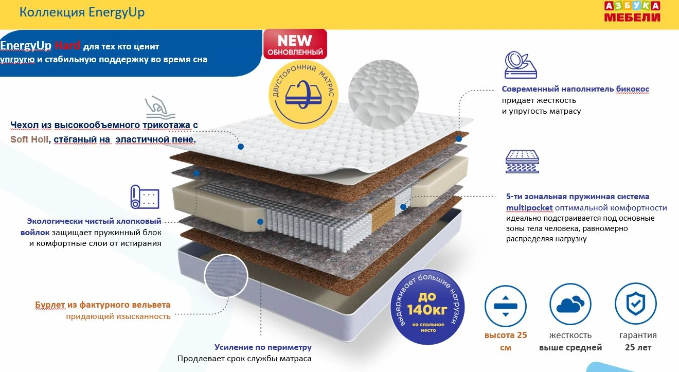 Современный наполнитель бикокос придает жесткость и упругость матрасу