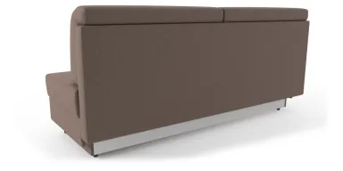 Каркас дивана изготовлен из ДСП, усилен березовым брусом. Все открытые части изготовлены из ЛДСП и облицованы защитной кромкой. Мягкие элементы изготовлены из ППУ и обиты мебельной тканью. Тип трансформации – Еврокнижка. Сиденье выдвигается вперед, спинка опускается. Выдвижное сиденье снабжено декоративными опорами и пластиковыми упорами для фиксации в нужном месте, во время выдвижения. Короб дивана установлен на пластиковые опоры. Подушки для спины, съемные изготовлены из мебельной ткани в тон с диваном. Наполнение подушек – формовочный супермягкий ППУ. Размер подушки 1000х450х170 мм.