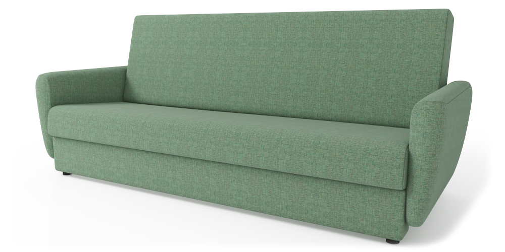 Диван доставили поврежденным. Черная обивочная ткань проткнута болтом одного из подлокотников которые убраны внутрь дивана. Так же, имейте в виду что это совсем небольшой диван. Подходит для человека ростом не более 175. Обивка выполнена посредственно, на подлокотниках имеются складки. Подлокотники короче сиденья и это выглядит немного странно (субъективное мнение). Самый интересный момент это то, что диван нельзя разложить если он придвинут вплотную к стене. Его нужно отодвинуть см. на 15-20 и потом можно раскладывать.