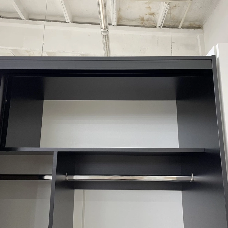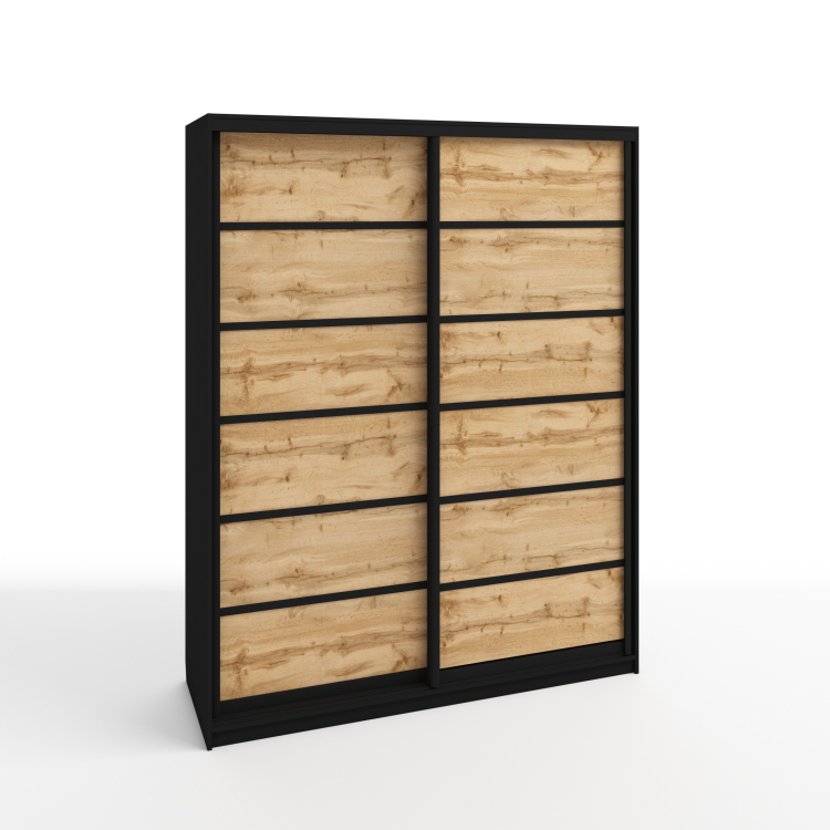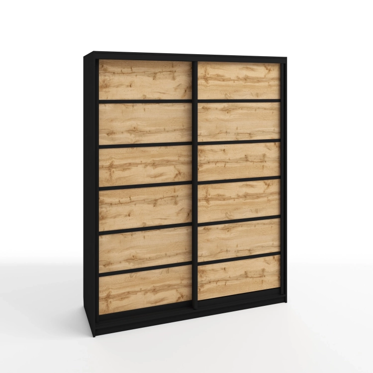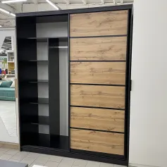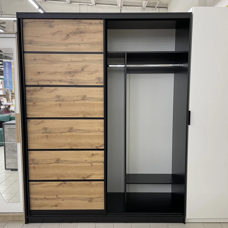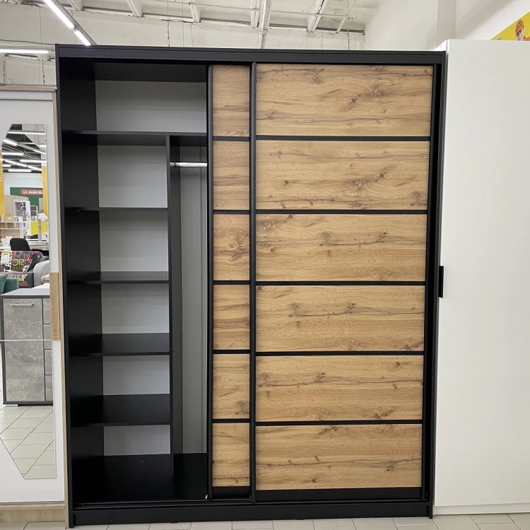 Шкаф-купе СТИВ в цвете черный/дуб вотан/профиль черный матовый стандарт - это стильное и просторное решение для организации хранения в вашей комнате. Цветовая комбинация создает современный и элегантный внешний вид.