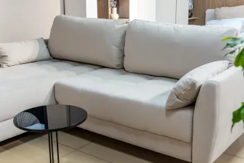 Наполнение дивана включает независимый пружинный блок, что создаёт ортопедический эффект. На подлокотниках используется пенополиуретан разной плотности и толщины (10, 20, 30 мм), дополненный слоем синтепона. Подушки спинки и декоративные подушки наполнены гипоаллергенным пухом Комфорель с добавлением пенополиуретановой крошки, а их чехлы простёганы синтепоном.