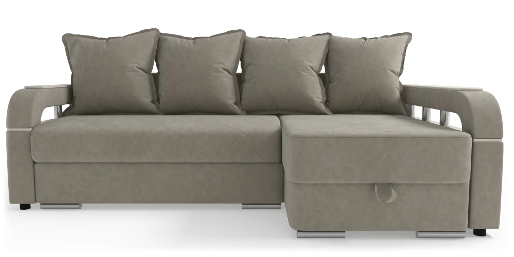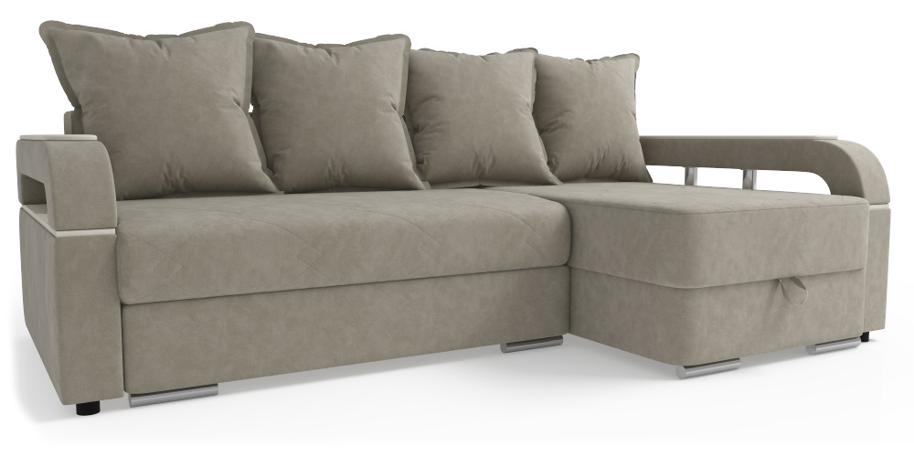 Диван угловой (пружина) + 4 подушки (поролон),ПРАВЫЙ "Г" МОНИКА Дакота 4 (Dakota 4) / Дакота 4 (Dakota 4) / ЛДСП (Москва) дуб седой