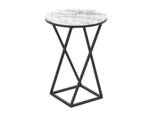 Стол ДП 1-03-05 чёрный/стекло с рисунком мрамор белый